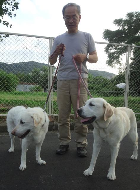 ところで雨の降る日は何か起こりそうな気がして嫌いじゃありません。 今日は3組の人(知人ばかり…)が訪ねてきました。 遠くは神奈川に越して行ったAさん、隣町赤磐市に住む息子さんと愛犬ルナちゃんと一緒に訪ねてきてくれました。 一年ぶりに再会したルナちゃんは花と顔といい声といいソックリで、もつれて遊んでいると間違ってしまいそう。 向こう側がルナちゃん(5歳)、手前が花(11歳)。