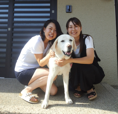 彼女たちが7年前 岡山大学に編入して以来のおつきあいです。 一人は念願かなって故郷 兵庫の中学校の保健室の先生、もう一人は看護師のキャリアを生かして介護施設に勤務している一児のママさん。 今日は近くの『土手下麦酒』で久々の女子会だそうで、わざわざ寄ってくれました。 ふたりとも大型犬を飼っていた大の犬好き! ひとりのコはその当時すぐ前のアパートに住んでいて、毎日のように大学の行き帰りに花を可愛がってくれました。 写真嫌いの花も今日ばかりは御機嫌でスリーショット♥ (花かあちゃん)