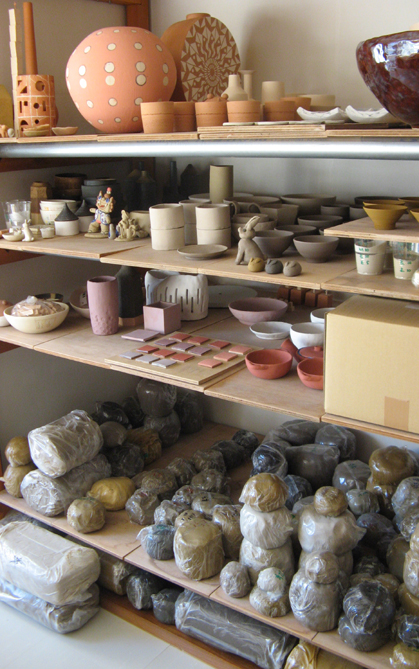 こちらは丁寧で良心的な陶芸教室も行っています(要予約)。 生徒さんの作品棚にはスゴイ大作も。 近かったらゼッタイ私、はまりそう。 奥の大っきな電気窯にはビックリ。 この中からあの素晴らしい作品たちが生まれたんだね。