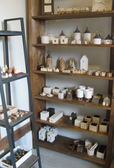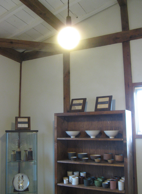 母屋と隣接する物置を改造した 『ギャラリーコーナー』 も拝見させてもらいました (公式オープンはもうちょっと先だそうです)。 花とうちゃんの工房より少し小さい?でも全然ステキ!
