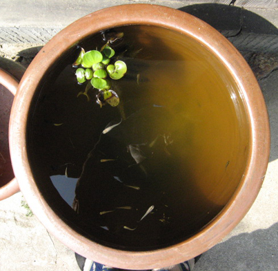 つい先日メダカをいただきにKさんというお家をお訪ねしました。白・黒・ピンク・オレンジのいろんな種類のメダカ、ちっちゃいけど見えますか?ゴミじゃないですよぉ。温暖化のせいで温度差が激しく丈夫なはずのメダカも受難の日々です。水蓮も植え替えをしたら分けてくださるそうです。これまた楽しみです~!