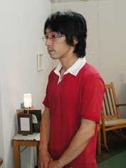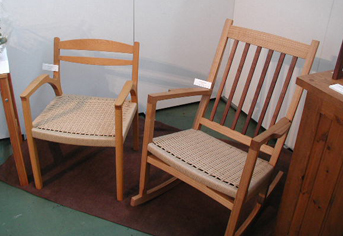 右写真は木工作家の小林克久さん。 (花とうちゃん)