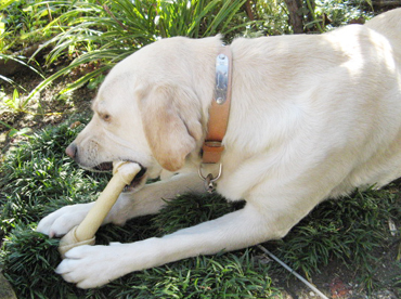 心優しきおニイちゃんにもらった「骨ガム」カミカミ…。 初めてだよぉ!シアワセシアワセ~。  何?母ちゃん車でお出掛け?ワタチはカミカミしながらお留守番してるよ。 行ってらっしゃ~い!(花)