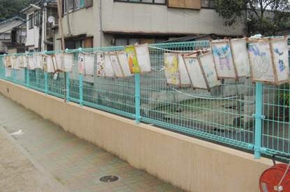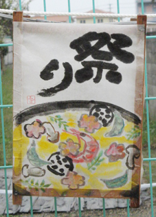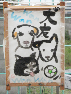 雨に打たれて今にも剥がれ落ちそうだが、ヘタウマって感じでイイ味でてるでしょ? お気に入りは右端の「犬友」。 誰が誰だかわかる? 来年もこの路線で頑張って参加しま~す! (花かあちゃん)