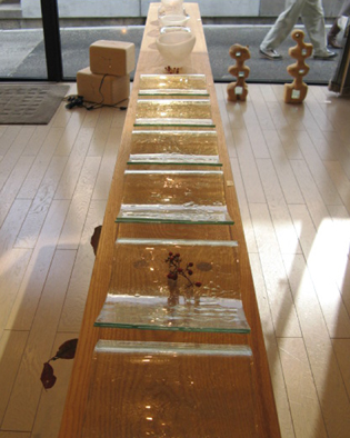 作り手は倉敷芸科大出身の中野由紀子さん(京都在住)。 可愛い方でしょ! 灯り・アクセサリー・オブジェ・食器・花器 etc とアイテムいろいろ、表現方法(サンドブラストやフュージング、宙吹き)もいろいろ。 欲しい物がいくつかあったけど、今お金がいる時なので泣く泣くガマンガマン。
