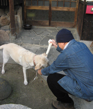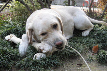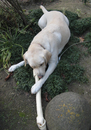 見て見て、ドデカイ牛皮ガム(特大)だよぉ。 あの心優しきニイチャンがプレゼントしてくれたんだ。 こんなのお友達の誰に聞いたって食べたこともなければ見たこともないって・・・。 へへ~ん! カ~ミカ~ミカ~ミ。 シアワセ~。 骨が丈夫になるかもねって母ちゃん言うけど、コラーゲンたっぷりで美肌になると思うわ。 BFたち、惚れ直すぞぉ~。 (花談)
