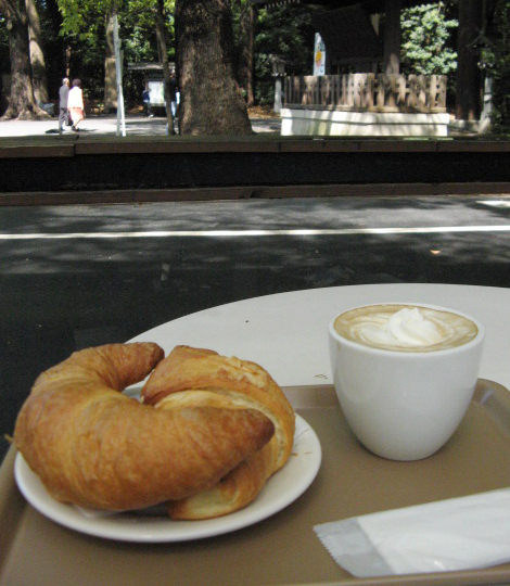 神宮前の喫茶店でいただいたクロワッサンとコーヒーなかなかイケてました。 右の写真はメガネ屋さん。 お留守番してくれてる花とうちゃんと花チンに見せてあげたかったなぁ。