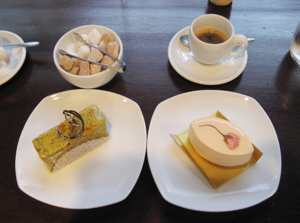 あ~花かあちゃん遊びに行ってたんだぁ~と言われては困ります。 東京・横浜に住む親戚に重要な説明をしに上京する母のお供、つまりオシゴトです。 用件を済ませたら、前もって下調べしていた自由が丘の「モンサンクレール」へ。 ここは有名パテェシエプロデュースの洋菓子店。 美味しそうでしょぉ…右が「桜のムース」左がビスタチオとナッツのケーキ。 それから五反田のビーズショップへ。 はっきり言って私の母はミーハーです。 都会アレルギーで田舎モンの花かあちゃんは下調べのお陰でニワカ東京っ子!