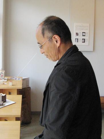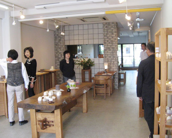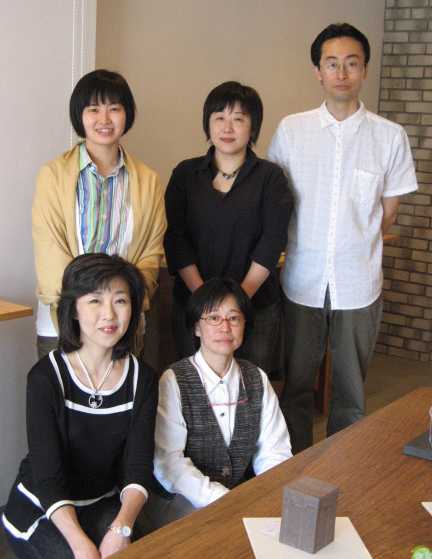 右端の集合写真…後方に並ぶ御三人、左はガラス作家の中野由紀子さん、そのお隣は陶器作家のKi:Kiさんご夫妻(神戸在住)です。 (花おやじ)