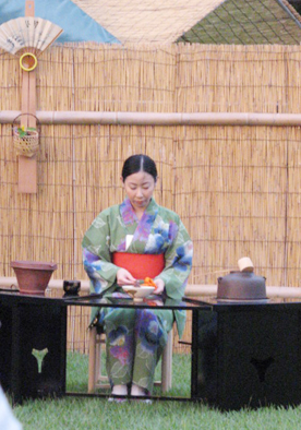 10回目を迎えた幻想庭園に今年も行ってきました。スーパーで買った豪華なお弁当(?)と飲み物を持って…。まずは第1目的の野立て(お茶席)、その後とりあえず缶ビールで乾杯!お弁当をつまみながら後楽園の夕景を堪能です。入園料がタダになるとかで浴衣姿の人が多かったですが全体としては少ない感じでのんびりムード。年に一回はこんな場所での夕食もいいですね。(花おやじ)