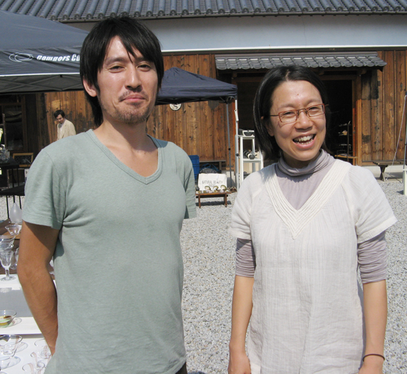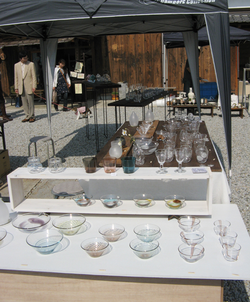 右写真は善通寺から参加のガラス作家ご夫妻。 今日は夏を思わせる日差しだったので作品がステキに輝いていました。 お二人の笑顔もいいでしょ~。