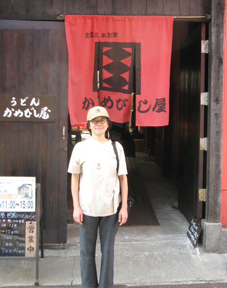 暑う~とトレーナーを脱いだら花とうちゃんのTシャツ黙って着てたのバレちゃった、ゴメンネ~。 お昼はカメビシ醤油がしているウドン屋さんで 『特製かけうどん(大)』 花とうちゃんが「上品なお味って書いてあるからコレっ!」だって、おつゆ最後まで飲み干し、完食! 真ん中の写真は醪(もろみ)を搾る袋、いい香りと色だしてたね。