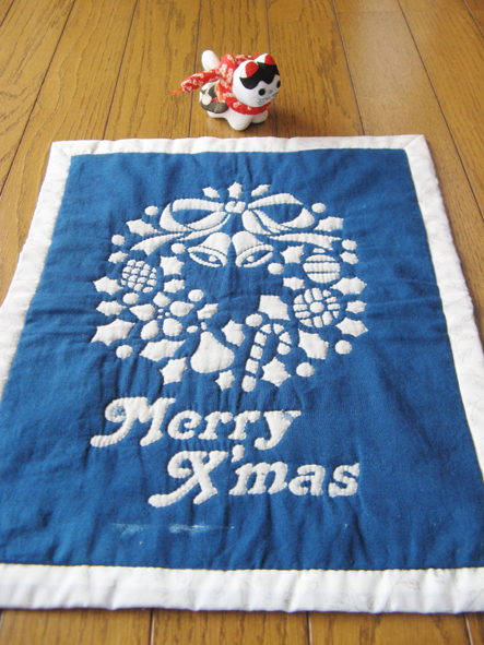 そう言えば私もキルトをしていたんだ~。花かあちゃんさんの戦利品?とは比べようもないくらいお粗末な出来ですがクリスマスらしいのを飾ってみましょう♪