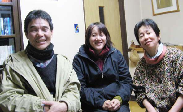 いつも割烹着ばかりの写真や~だな~。 モンチッチ頭も恥ずかしいよぉ~。 ひる1時に始まった忘年会は9時過ぎ「花とうちゃん沈没」によって幕を引きました。 来年からガンバルゾーって活力がみなぎる好い忘年会でした! (花かあちゃん)