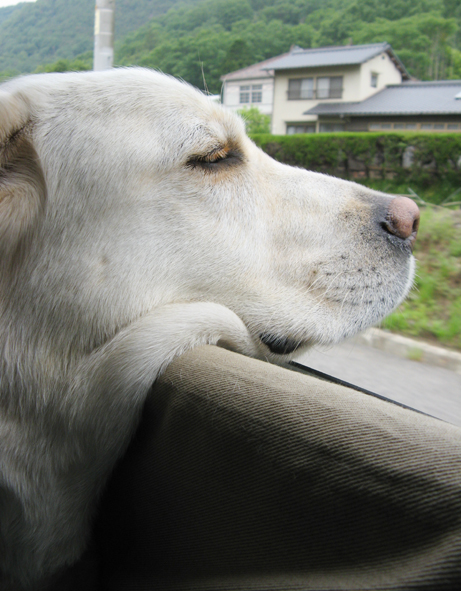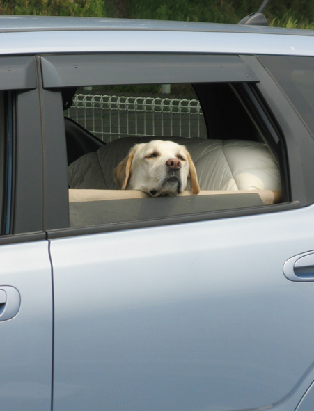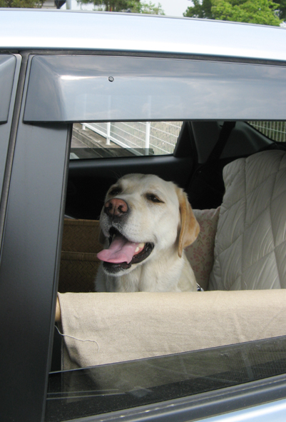 車でのお出掛けウレチーんだけど、このコースいやな予感?? ワタチの大好きなパンを片手に猫なで声のカーちゃん。
