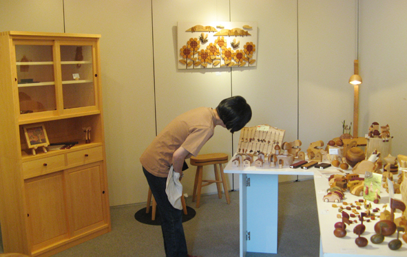 小物が中心だけど、椅子や小テーブル、食器棚など家具も出ていました。 暑い中、ねこさん大好きの花チンも応援に駆けつけたよ。 風の通り道で「お利口さん」していたね~。 会期は7日(月)まで、奉還町近くの富町「アートガーデン」にて。 (花かあちゃん)