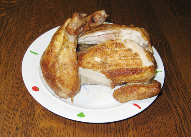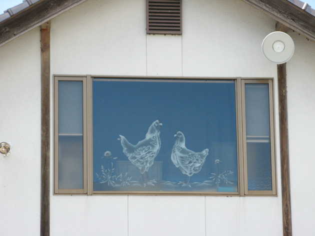 2階の窓には可愛らしいトリの窓ガラスが入っていました。 さて、夕食のメインデッシュは当然ローストチキン。 初めていただきましたが、本当に旨い! しかも安い!(1羽で1,700円、4~5人分でしょうか?) きっとこれからケンタッキーフライドチキンの頻度は減ることでしょう。 (レポーターは花おやじ)