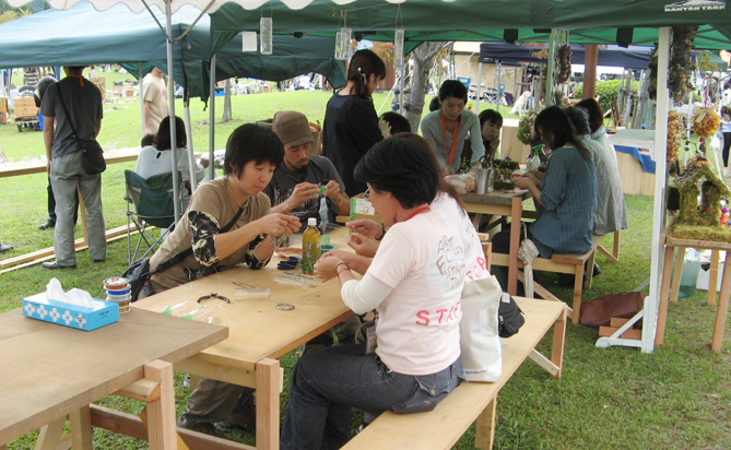 木の匙を作ったり、からくり玩具を作ったり、箱庭を作ったり・・・皆さんいろんなワークショップを楽しんでいました。 バンド演奏も会場を盛り上げてましたよ。