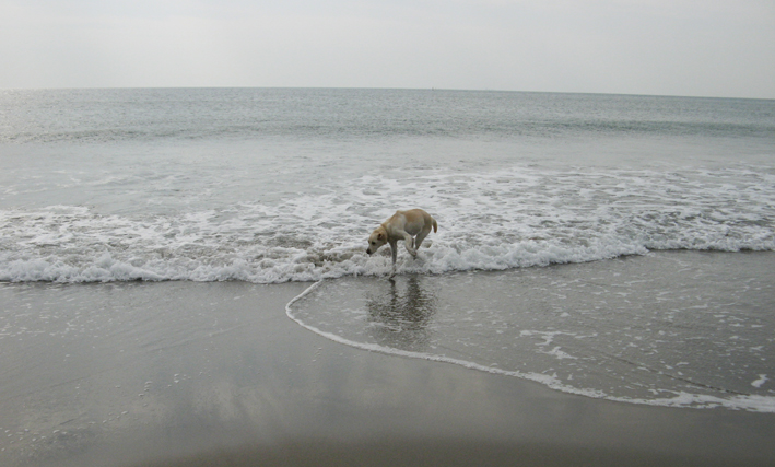 砂がさらさらでゴミが落ちてないきれいな浜で、波と遊んだよ~石や貝を拾ったよ~。 試しに海の味見をしてみたけど塩っ辛くてウエェ~。 遠くでサーファーが波乗りしてたけどあんまり上手じゃなかったなぁ。