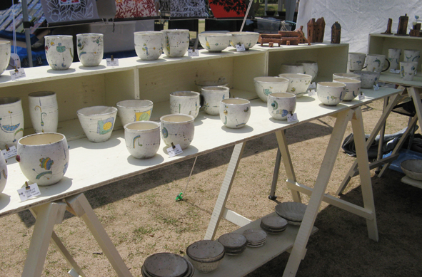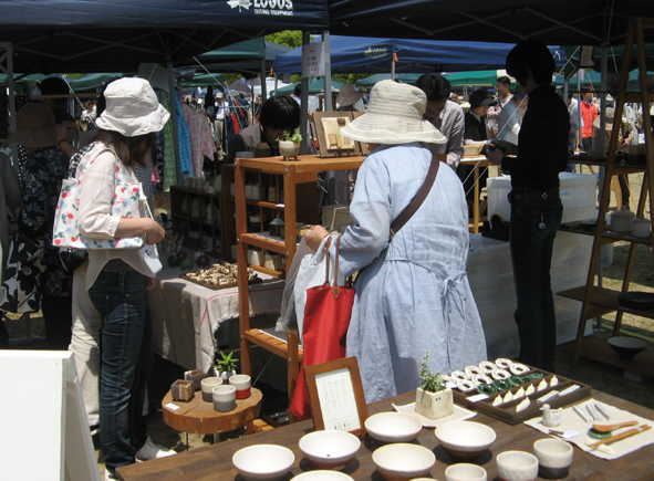 やっぱり人だかり…Ki:Ki工房さん(神戸在住)。 どんなに変装しても奥さんにはバレちゃいます、今日は怪しいサングラスをかけていったんですけどね。 ここは乙女心をくすぐる可愛い陶小物がいっぱい!困りますぅ。