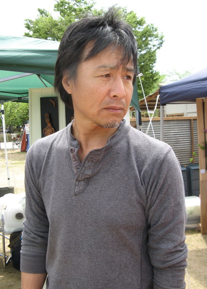 「倉敷もいいですが姫路にもぜひにあそびにいらして下さい!出展しております!山本テツヒコ 」 ってご案内いただいたら、そりゃあスッと飛んで行きますよぉ。 朝8:30ちょうどに岡山を発ち姫路へ。 晴天ですが強風吹き荒れてました。 憂いを秘めた表情のお方がテツヒコさん(滋賀在住)、明るくポップなタッチの粉引き作品と 『夜のイメージ』 オブジェ作品と二通りの作風をおもちです。 このお人柄が好きなんだなぁ~。