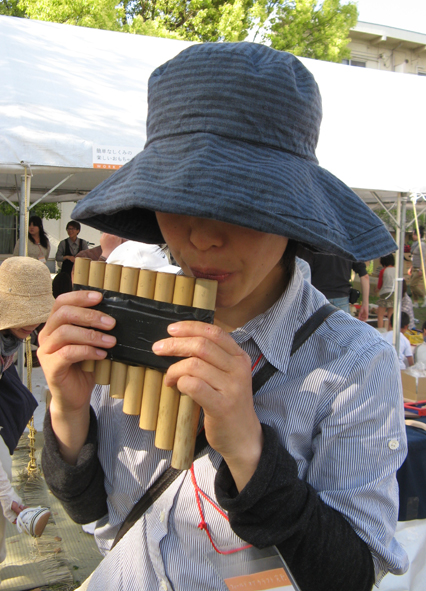 午後1:30姫路を後にして一路倉敷へ、「3時までに到着できるかしら?」 余裕のセーフ! こちらはモチロン知り合いがいっぱい、同窓会みたいなもんです。 あっ、未来のパティシエ・ふみさんがパンフルート吹いてるぅ、今日も会場ボランティアでお手伝いしているとか。
