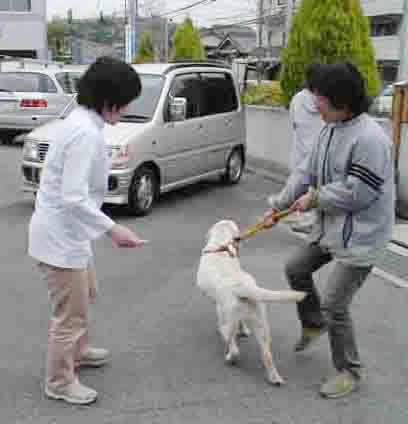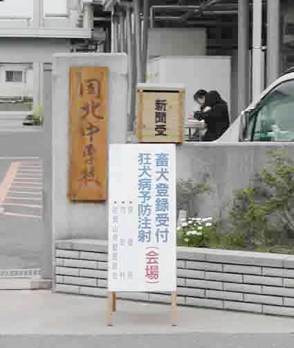今年もやって来ました狂犬病予防注射。会場は歩いて30秒の向かいの中学校なので大助かり。この日一番喜ぶのは花。だって、あっちも見ても、こっちを見ても、花にとってはみんなオトモダチ(犬類みなオトモダチ)。むこうは何とも思ってもいないかもしれないが・・・。ともかく帰りたがらない。行きはヨイヨイ、帰りが恐い。(花おやじ)