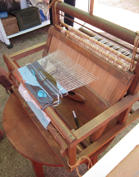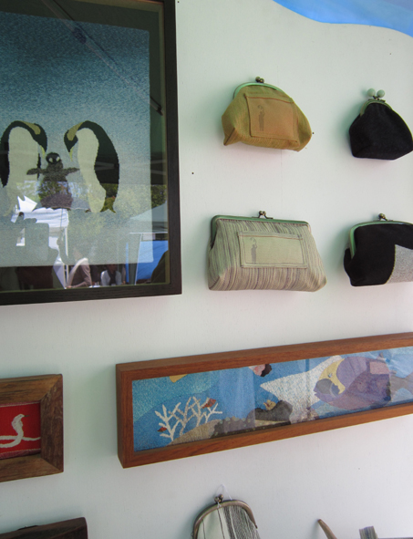 お隣さんは以前から気になっていた京都のののさん、綴れ織の額や小物がステキ! 出来上がるのにすごく時間がかかるけど誰にもはマネのできない作品です。 持ち運びしやすい卓上織機で実演されていました。