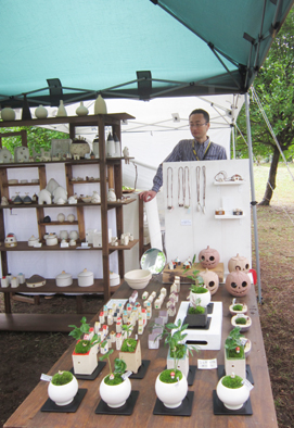右上写真のKi:Ki工房さんの苔を使った陶庭が大人気!羨ましいことにお客さんがひっきりなし! 毎回新しく試み、見る側を楽しませてくれます。