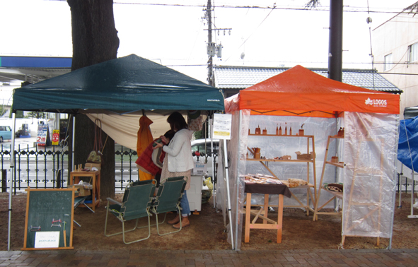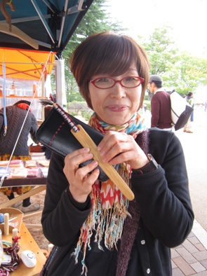 最終日、台風の影響で朝からしとしと雨が降っていたが次第に雨足が強くなって事務局から2時過ぎに退去勧告が出た。 最後の生徒さんが織り終えるまで付き合っていたら、回りは蜘蛛の子を散らすようにいなくなっていた。