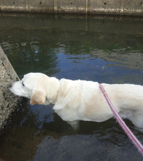 ふぁぁぁ気持ち良かった~と満足そうです。 川に引っ張り込まれそうなので明日から長い散歩ヒモを用意しなくっちゃ!! (花かあちゃん)