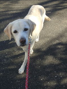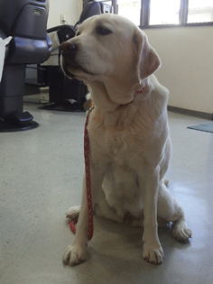 まずはいつもの守衛さんのところでビスケットのおねだり?