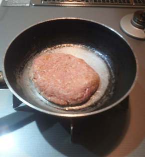 〈右写真〉初めて牛肉ハンバーグ手作りしてみました。豆腐とパン粉とニンジン入り。お味はいかが?