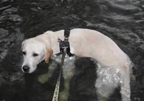 花ちゃんが水遊びを喜ぶので、きれいな流れのところで遊ばせていたら花ちゃん流れていって・・・。あわてて先回りしてどこかで助けなくっちゃって走った走った。でも花ちゃんのほうも先回りして陸に上がって私を待ってた。涙が出そうだった。神様ありがとう。(花かあちゃん)