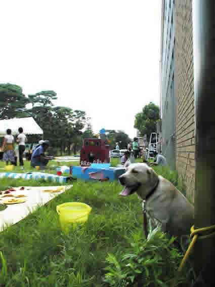 会場となった岡山大学は自転車で4分。この近さだからすごく楽。見に行くのもお手伝いするのも(お昼休みシャワー浴びに戻っちゃった)。残暑厳しい折、今日は野外活動・・・。 手が足らないと言うので直サンを引っ張り込む。これが正解! チビッコ30人くらいでオンボロバス一台を作る。我がスズキコージさんチームはボランティア5人。なかなか「イカス」オンボロバスが5時間かかってやっと完成した。チームワークが最高だったと思う。ぶっ倒れそうだったけど楽しかった。 来年もお声掛けてね!(花かあちゃん)
