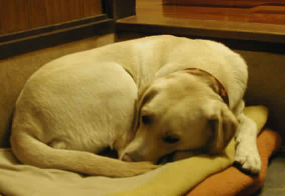寂しいのに加えてお腹が空いちゃったよぉ。連れてってくれたらいいのに・・・。何がワンワン倶楽部よぉ。でも父ちゃんと母ちゃんの顔を見たら安心してなんだか眠たくなってきた、今度こてっちゃんと大豆ちゃんと3匹で一杯呑みに行っちゃうから・・・ムニャムニャ。グゥ~グゥ~。(花談)