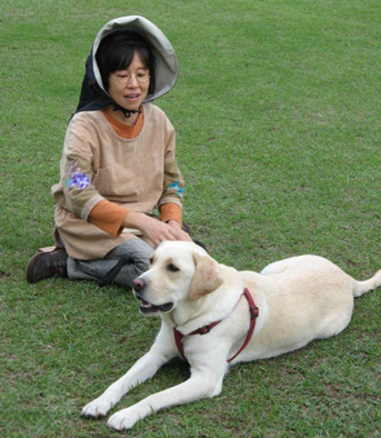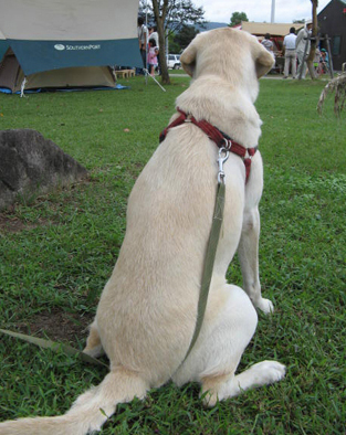 会場にはたくさんワンちゃんがいるんだよ。これまたワタシの楽しみ。黒ラブちゃん、黒柴・龍之介君、よく吠えるビーグル君、コーギー・・・。