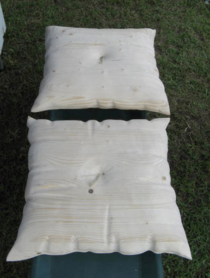 愛知の木工作家・伊藤さんのコーナーはいつも笑わせてくれる。今回は巨大な「ザリガニくん」とふくらみ具合が本物そっくりの「お座布団」。今年もありがとう!