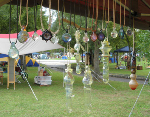 奈良のガラス作家・中村さんは2000℃を越える炎で美しいガラスのアクセサリー作ってる人。ご本人と奥さんの笑顔が素敵!ここでまた、かあちゃん財布の中を覗いてため息・・・。