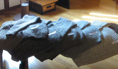 それに合わせてお母さんの(貴之さんの母)手織りのマフラー・帽子・セーターなども展示されています。会期は11日まで。最後の写真は機嫌よく待っている花。(花おやじ)
