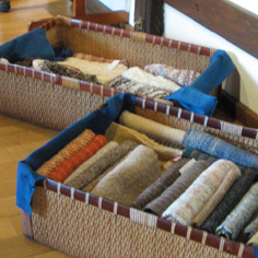 木を粉にした物を売っていて 煮出して染めます。黄色は玉葱です。