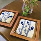 お尻の下に敷くには可哀そうな小さいサイズ(約17~18㌢角)で、プチマットと名付けました。 まず5つの中からひとつデザインを選びます。皆さんはこちらが用意したウール糸束を結んで織って仕上げます。 制作時間は個人差がありますが、だいたい6~8時間。 お申し込みは『星のシエスタ』のお問い合わせフォーム or お電話で。