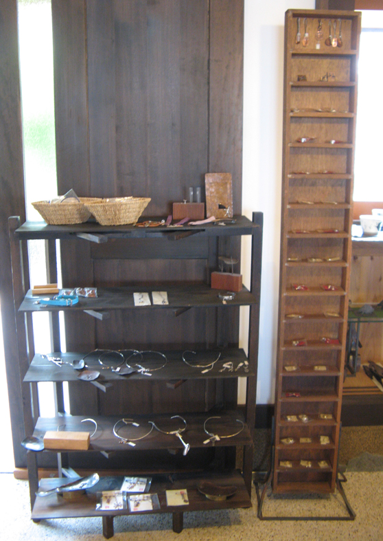 この夏念願の海外日帰りドライブと洒落こんで、小高く見晴らしの良いところにある工房 『SHOW SHOW SHOP』 (香川県綾歌郡)を訪ねました。 自宅からちょうど2時間、まわりにたくさん 「フジサン(?)」 が見えました?? 素敵なところでしたよ。 まずは建物(奥さんのお母さんが図面をかき、おじさんが建てられたという ギャラリー+作業場+住居)、それからオーナー石井章さんが作る金属作品、さらにご本人、加えてギャラリーコーナー。