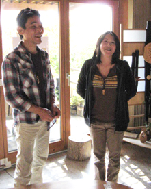 ソファの上のおざぶ見てくださいまし。 私の最新作です! 一枚織りのノッティング機キリキリいっぱいの大きさでした。 珈琲と七変化(ランタナ)とヤシャブシで染めました。 ピッタリ合ってるでしょ?! (花かあちゃん)