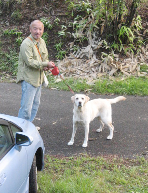 山の朝は清々しい。 花チンを脅し上げていたタケ蔵もいっしょになってそこらへんを散策、犬たちはもう仲良し。 花チンは皆が止めるも聞かず、琵琶が池(?)で水遊びして大はしゃぎ、よっほど楽しかったんだね。