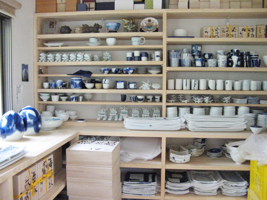 そのあと、岡山で近くに住む友達の紹介で陶芸家大田一成さんの自宅工房を訪ねた。 かつて岡山でお勤めされていたそうだ。 棚に白磁の器やシーサーたちが並んでいた。 絵付けの模様にスパイラル(渦巻き)が多かったが、来ている服もスパイラル柄、よほどお好きなようで…。