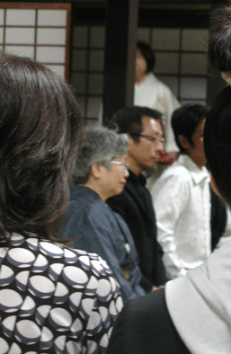 月さんの観られる今日はスゴイ人出で、お茶席も足がしびれるくらい待たされた。 このお席の「次席さん」をつとめたのがナント知り合いの造形作家のよしもとさん。 昨年から裏千家を習い始められたとか、その割には度胸が据わっていたね。