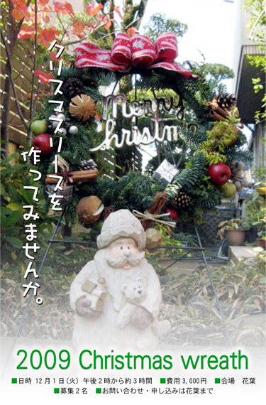 以前、花葉で募集をしていた『クリスマスリースを作る講座』が本日開催されました。 講師は車で約5分のところにお住まいの「コメット治子先生」。