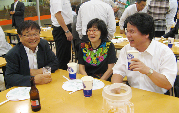 町内会長さんに誘われて花とうちゃんと裏山の岡山理科大学の「フェアウェルパーティ2010」に行って来た。 最近O大学のProfessorテンビーさんとオトモダチになって国際交流に目覚めた私、意気込んで行ったんだけど…。 たくさんの人がお見えだけど、それぞれ町内会・外国人・貴賓と席が別々で残念ながら交流になってない。 花とうちゃんとかあちゃんは野外席で酒盛り、久々の生ビール片手に各国お国自慢の料理をつまみながら楽しく過ごした。 そりゃそうと昨日の参議院選挙の当選者2名も顔見世に来ていたよ。 会場滞在時間約10分、あわただしく去って行った。 ゆっくり出来ないんだったら来なきゃいいのに~なんて思ったのは私だけだろうか? (花かあちゃん)