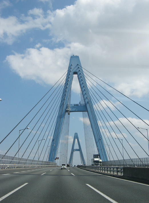 かいつまんで言うとね、岡山を出て、琵琶湖の辺 (真ん中の写真クリックしてみてね!ちっちゃく琵琶湖が写ってるよ) で休憩をとって、瀬戸大橋によく似た吊橋を渡って(伊勢湾岸自動車道)、愛知に入ったあたりから運悪くスンゴイ渋滞に巻き込まれやっと辿りついた木工家・井崎正治さんの工房(蒲郡)。 お約束の昼過ぎが夕方に・・・ 「あれ?約束今日じゃなかったっけ?」 とご心配かけしてしまいました。